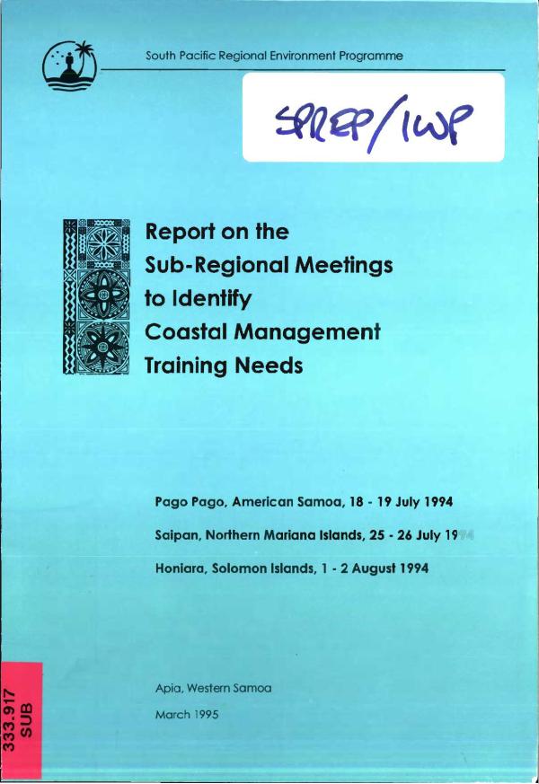 Three meetings combined in one report|Contents: I. Pago Pago, American Samoa, 18-19 July 1994. II. Saipan, Comonwealth of the Northern Marianas Islands, 25-26 July 1994. III. Honiara, Solomon Islands, 1-2 August 1994|3 copies and available online|One copy|Arthur Dahl's records and research collection