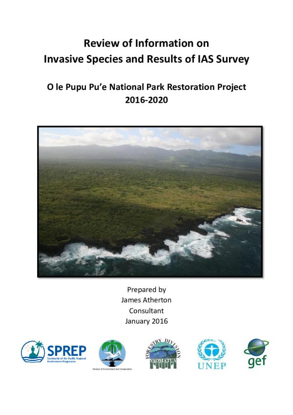 This report was prepared for the Samoan Ministry of Natural Resources and Environment (MNRE) by consultant James Atherton with the assistance of Forestry Division Staff in particular Vailega Timoteo Molesi and Peteli Pese The O Le Pupú Pu'e National Park (OLPP) is located approximately 15km south of Apia on the border of the districts of Falealili and Siumu (see figure 1). It was the first national park to be established in the South Pacific and in Samoa. The original area of the O Le Pupú Pu'e National Park was about 4,234 hectares (10,457 acres), but with the inclusion of the Togitogiga Forestry Plantation on the western edge of the park in 2008, as well as the recreational area at the Eastern edge, the Park increased to 5,019 hectares (12,396 acres) (MNRE, 2010).