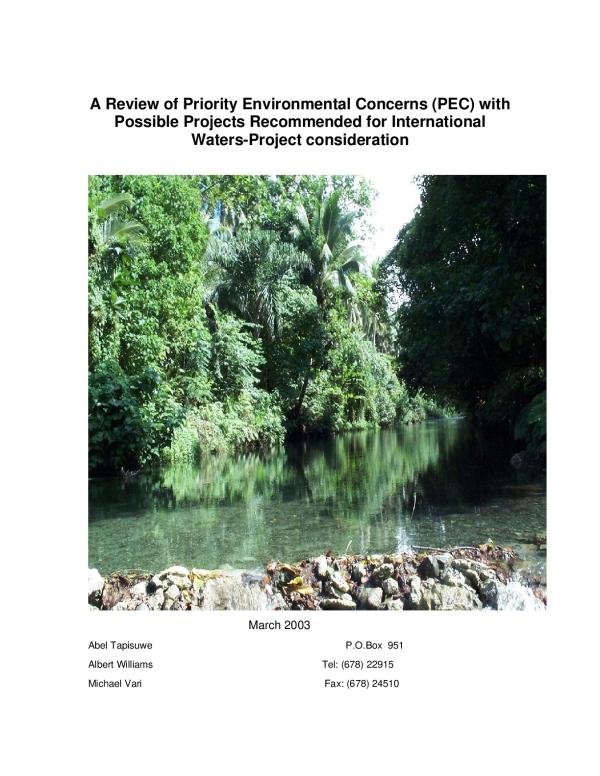 This report highlight priority environmental concerns (PEC) for the Vanuatu IWP Project on key environmental sectors of waste, agriculture forestry, biodiversity, water, and fishery. The main issues identified and discussed include the major constraints or vulnerabilities, and various opportunities in the sectors. Due to the time frame given to the consulting team, consultation was only carried out Port Vila.