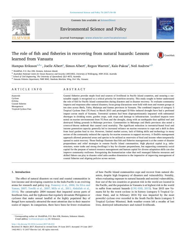 Coastal fisheries provide stable food and sources of livelihood in Pacific Island countries, and securing a sustainable supply is recognised as a critical priority for nutrition security. This study sought to better understand the role of fish for Pacific Island communities during natural disasters and in disaster recovery.