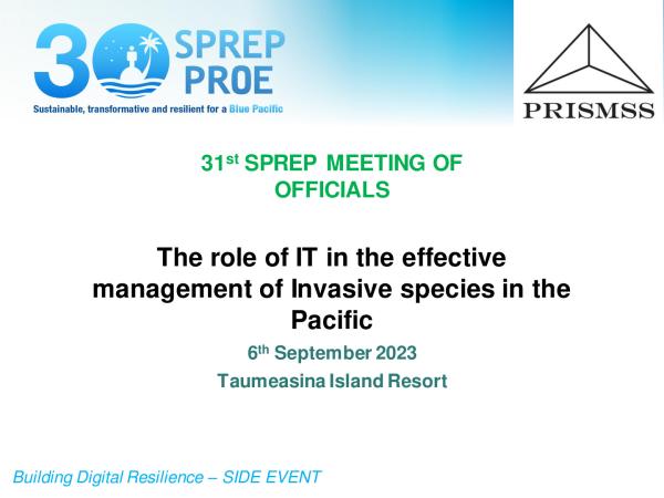 Our goal - Pacific people benefit from healthy and resilient island and ocean ecosystems Objective - To significantly reduce the socio-economic and ecological impact of invasive species on land and water ecosystems and control or eradicate priority species