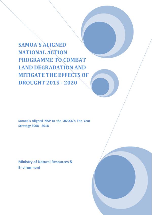 Samoa's aligned NAP to combat land degradation and mitigate the effects of drought 2015-2020 is the over-arching environmental policy and planning framework for guiding its implementation of an meeting its obligations to the United Nations Convention to combat Desertification (UNCCD) and Land Degradation and to mitigate the Effects of Droughts. The NAP was first developed and formally launched in 2006. In a simplified sense, the NAP addresses the causes and effects of land degradation events such as erosion, flooding, landslide, compaction, contamination and the decline in the quality of ecological services provided by land-based or soil-based ecosystems. The NAP also addresses the effects of droughts in a proactive manner through building the capacities of communities and ecosystems to become more resilience to the effects of droughts