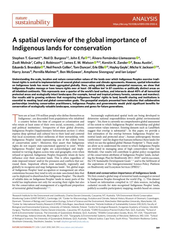 Understanding the scale, location and nature conservation values of the lands over which Indigenous Peoples exercise traditional rights is central to implementation of several global conservation and climate agreements