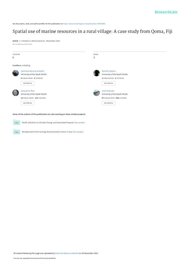 Understanding the values of fishers' Indigenous and Traditional Knowledge (TIK) and of fishers' spatial use of customary fishing grounds is an important contributing factor to marine resource management. This study investigates and documents TIK marine resource and the associated spatial knowledge of fishing areas in Qoma, a rural fishing village in Fiji.