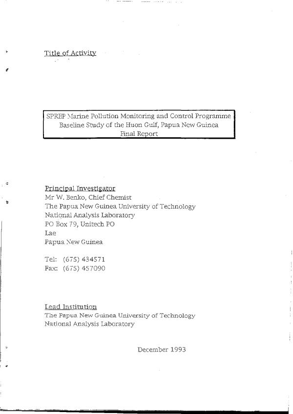 SPREP-POL is the response of the South Pacific nations to consolidate the on going pollution research and monitoring projects of SPREP into a regionally-co-ordinated monitoring, research and control programme. The major aim of this programme is to provide Governments with recommendations, based upon quality scientific data, for the introduction or improvement of legislation to control pollution of the marine environment.