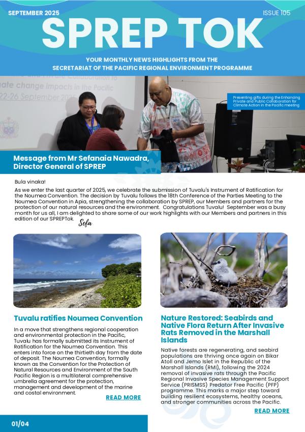 A monthly e-bulletin of activities and assistance from the Secretariat of the Pacific Regional Environment Programme to its member countries