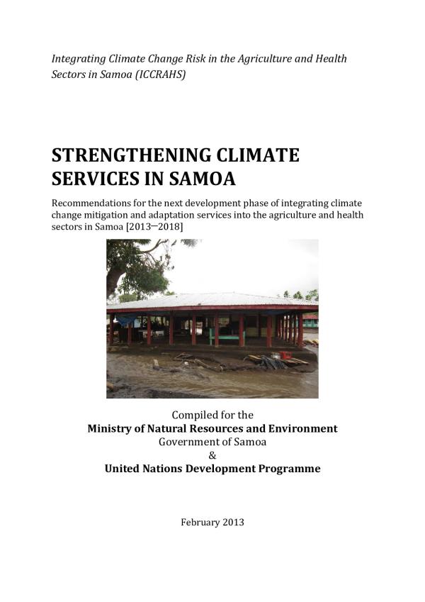 Strengthening Climate Services in Samoa : Recommendations for the next development phase of integrating climate change mitigation and adaptation services into the agriculture and health sectors in Samoa (2013-2018)