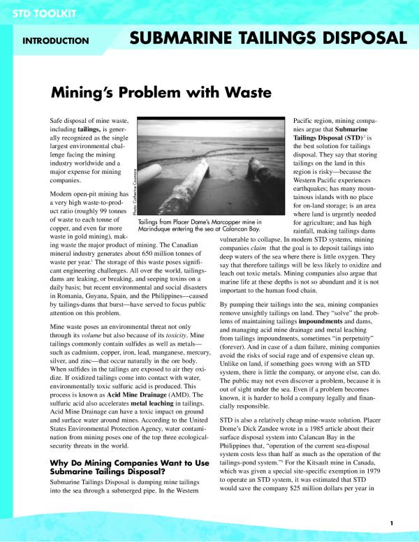 Safe disposal of mine waste, including tailings, is generally recognized as the single largest environmental challenge facing the mining industry worldwide and a major expense for mining companies. Modern open-pit mining has a very high waste-to-product ratio (roughly 99 tonnes of waste to each tonne of copper, and even far more waste in gold mining), making waste the major product of mining. The Canadian mineral industry generates about 650 million tonnes of waste per year.1 The storage of this waste poses significant engineering challenges. All over the world, tailingsdams are leaking, or breaking, and seeping toxins on a daily basis; but recent environmental and social disasters in Romania, Guyana, Spain, and the Philippinescaused by tailings-dams that bursthave served to focus public attention on this problem.