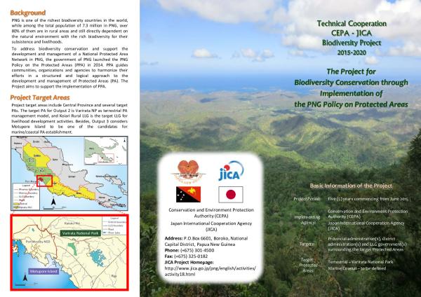 Five year project commencing from June 2015, between CEPA & JICA : The Project for Biodiversity Conservation through Implementation of the PNG Policy on Protected Areas. Targets: Provincial administrations, district administrations, and LLG governments surround the target Protected areas.