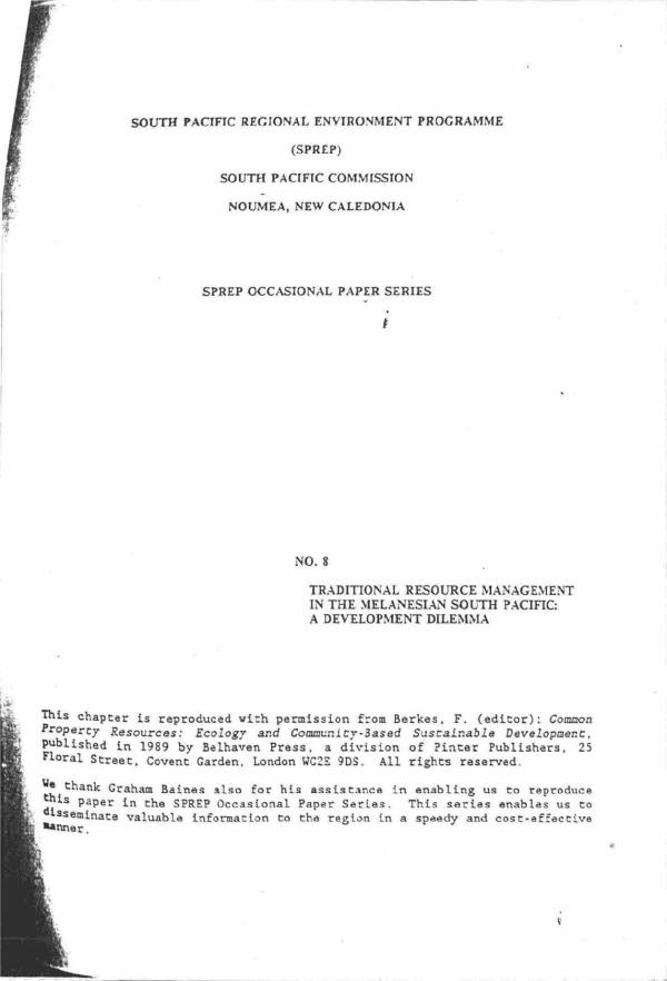 Traditional natural-resource management systems of the indigenous, communities of the Pacific islands, based on communal-property concepts, continue to function in the face of many changes in the circumstances in which they operate. All have been weakened by changes accompanying economic development - yet they have adapted, and persist.