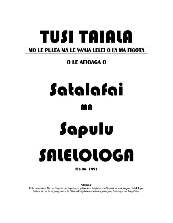Fishery policy - Samoa - Savaii - Satalafai ma Sapulu Salelologa