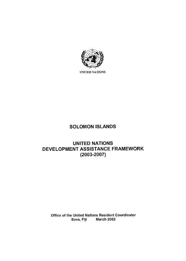 The preparation of the United Nations Development Assistance Framework (UNDAF) for the Solomon Islands for the period 2003-2007, as well as the Common Country Assessment (CCA) report on which it is based, has been a practical step in meeting the UN Secretary General's vision of a unified system at the country level. Through the CCA/UNDAF process, the UN Country Team (UNCT) has come together with the Government, NGOs, donors and other stakeholders in the development of the Solomon Islands to jointly assess the major challenges facing the country and together with the identification of the comparative advantages of UN agencies identified key aspects of future UN support.