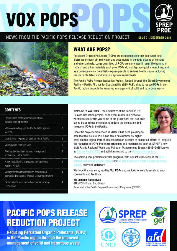 Persistent Organic Pollutants (POPs) are toxic chemicals that can travel long distances through air and water, and accumulate in the fatty tissues of humans and other animals. Large quantities of POPs are generated through the burning of rubbish and other materials each year. POPs do not degrade quickly over time, and as a consequence potentially expose people to serious health issues including cancer, birth defects and immune system impairments. The Pacific POPs Release Reduction Project, funded through the Global Environment Facility Pacific Alliance for Sustainability (GEF-PAS), aims to reduce POPs in the Pacific region through the improved management of solid and hazardous waste.