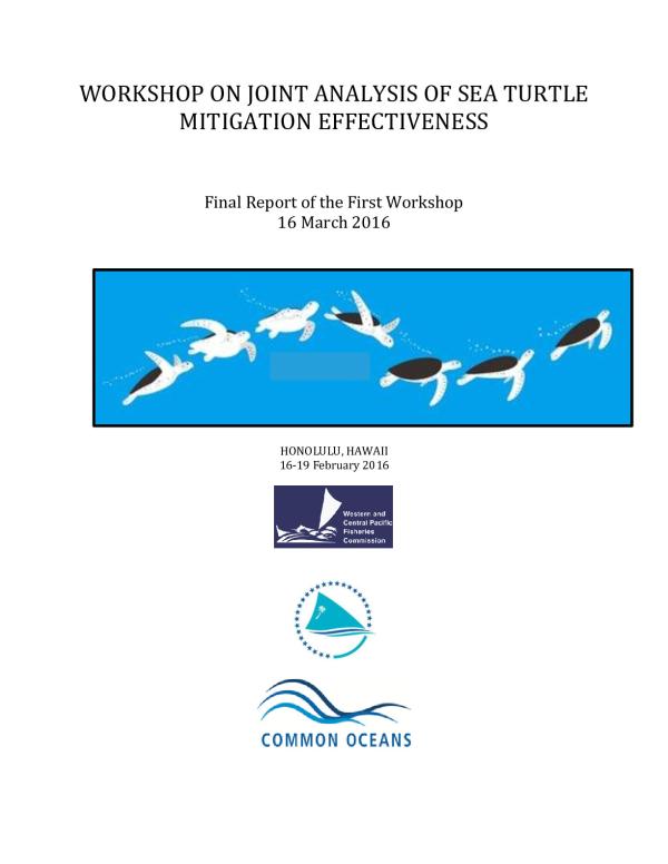 WORKSHOP ON JOINT ANALYSIS OF SEA TURTLE MITIGATION EFFECTIVENESS Final Report of the First Workshop 16 March 2016 HONOLULU, HAWAII 16-19 February 2016 Table of Contents 1 Introduction .................................................................................................................................................................... 1 2 Workshop Objectives .................................................................................................................................................. 2 2.1 Status of Pacific Sea Turtles ............................................................................................................................. 3 2.2 Status of Mitigation Implementation ........................................................................................................... 5 3 Data Preparation and Exploratory Modelling ............................................................................