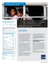 Asian Development Bank member fact sheet. ADB assistance to Samoa supports improvements in the delivery of basic social services, and provision of safer and more efficient road and maritime transportation, better Internet connectivity, and effective disaster relief.