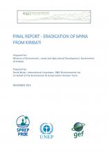 A programme to eradicate two species of myna from Kiribati was carried out between November 2014 and November 2015 by staff of the Environment & Conservation Division, Ministry of Environment, Lands and Agricultural Development with funds through the regional GEF-PAS Invasives project coordinated by UNEP and SPREP, assisted by international consultant Dave Butler.