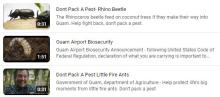 - Little fire ants video - Guam Airport Biosecurity Video - Rhinoceros beetle video Don't Pack a Pest