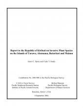 The Republic of Kiribati requested assistance from the US Department of Agriculture, Forest Service, Institute of Pacific Islands Forestry, to conduct a survey of invasive plant species of environmental concern. Similar surveys have been conducted in American Samoa, the Commonwealth of the Northern Mariana Islands, the Cook Islands, the Federated States of Micronesia, Niue, Palau, Samoa and Tonga. The survey was carried out in August and September 2003. We were requested to survey the islands of Tarawa, Abemama, Bern and Butaritari; however, difficulties with plane connections did not permit us to visit Bern and Maiana was substituted instead.