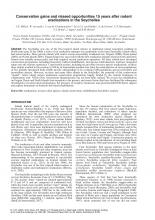 The Baja California Pacifc Islands, Mexico, are globally important breeding sites for 22 seabird species and subspecies. In the past, several populations were extirpated or reduced due to invasive mammals, human disturbance, and contaminants. Over the past two decades, we have removed invasive predators and, for the last decade, we have been implementing a Seabird Restoration Programme on eight groups of islands: Coronado, Todos Santos, San Martín, San Jerónimo, San Benito, Natividad, San Roque, and Asunción. This programme includes monitoring; social attraction techniques; removal of invasive vegetation; reducing human disturbance; and an environmental learning and biosecurity programme. Here, we summarise historical extirpations and recolonisations during the last two decades of restoration actions, and we update the status of breeding species after more than a decade. To date, from 27 historically extirpated populations, 80% have returned since the ?rst eradication in 1995. Social attraction techniques were key in recolonisations of Cassins auklet (Ptychoramphus aleuticus), royal tern (Thalasseus maximus), and elegant tern (T. elegans). A total of 19 species breed on these islands, four more species than a decade ago, including 12 new records. The most abundant seabirds, black-vented shearwater (Puffnus opisthomelas), Cassins auklet, western gull (Larus occidentalis), and Brandts cormorant (Phalacrocorax penicillatus), have shown a remarkable population increase. Current threats include the potential reintroduction of invasive mammals, guano mining, recreational activities, pollution, and commercial ?sheries. To maintain these conservation gains in the long-term it is necessary to continue implementing restoration actions and reinforcing protection on these important natural protected areas.