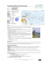 La zone est extrêmement variée et les enjeux le sont donc également. Toutefois certains dentre eux sont présents dans presque tous les sites où le programme intervient : Pêches récifales de plus en plus problématiques Travaux sur létat de santé des récifs, leffet des pêches, leffet des AMP, éparpillés et peu coordonnés, Coopération régionale très limitée malgré la similitude des problèmes et probablement des solutions Possibilité de renforcer la couverture des AMP dans le Pacifique Disponibilité de savoir faire (centre de recherche, ONG, entreprises, Etats), de réseaux (LMMA, ONG, GCRMN, etc.) et de moyens (commande politique de la France de coopérer régionalement sur le sujet, ONG internationales prêtes à cofinancer) Espèces phares en danger par endroit (tortues, dugong, etc.) Pressions : - Activités humaines : surtout surpêche ou pêche avec des techniques destructives mais aussi, pollution des eaux (agriculture intensive, problèmes miniers, etc.) - Facteurs climatiques: cyclones