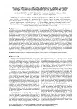 This essay offers a 25-year overview of eff orts to remove Pacific rats (Rattus exulans) from the four islands of the Pitcairn group. Following the 19911992 discovery that rats were severely reducing breeding success of gadfly petrels (Pterodroma spp.), Wildlife Management International proposed eradication. Eradication success was achieved using ground-based baiting on the small atolls of Ducie and Oeno in 1997, and there is now evidence of petrel recovery on Oeno, but two eradication attempts on inhabited Pitcairn (1997 and 1998) failed. By the early 2000s, the development of aerial baiting through the 1990s placed an eradication operation on the fourth island, Henderson, within reach. Preparatory fieldwork in 2009 allayed doubts in two key areas: the feasibility of maintaining a captive back-stop Henderson rail (Porzana atra) population, and bait uptake by crabs (Coenobita spp.). Royal Society for the Protection of Birds (RSPB) expertise secured the necessary funding of £1.5 million, and 75 tonnes of brodifacoum-containing bait were dropped in August 2011. Despite extensive mortality of free-living rails, the population, supplemented by released captive birds, returned to pre-operational levels in 23 years. Meanwhile those tending captive rails saw no rat sign before leaving Henderson in November 2011. Unfortunately, a rat was sighted in March 2012, and continuing rat presence confirmed in May 2012. Subsequently rat numbers have returned to pre-operational levels without any sign of population overshoot as observed on Pitcairn. Genetic analysis suggests around 80 rats, roughly 1 in 1,000, survived the bait drop. With no evidence of imperfect bait coverage or deficiencies in bait quality or brodifacoum resistance, it seems some animals chose not to eat bait. Choice tests on Henderson Island rats suggest some rats prefer natural foods over bait. This adverse situation may have been exacerbated because, in August 2011, natural fruits were more abundant than anticipated due to drought earlier in the year. To overcome rat preference for natural food, any second Henderson attempt might benefit from more attractive bait. Without such developments, a second attempt risks another failure. Hendersons biota will survive the delay.